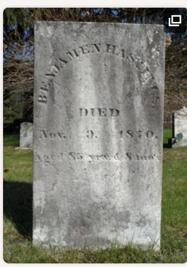 Born March 23, 1787, In Greenfield, Massachusetts, and died on November 9, 1870, in Greenfield, Massachusetts. His birthplace is listed as Vermont. His son Marshall was born in Greenfield, but he was in Vernon, Vermont for his marriage to Hattie Grout. He’s buried in High Street Cemetery. He appears in some sources as Benjamin Hastings III, and in other sources as Benjamin Hastings II. His father was Selah Hastings, and his mother was Susannah Hastings (Fish). His date of birth is documented in the Massachuetts Marriage and Death Records (1700 - 1850). He had the following siblings: